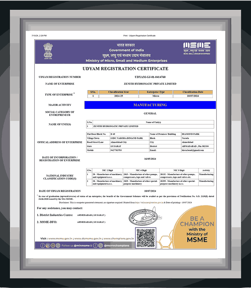 With a strong presence across India, Zenith Hydromatics provides prompt delivery, technical support, and service assistance in all major industrial hubs, ensuring every client receives the same level of reliability and care.